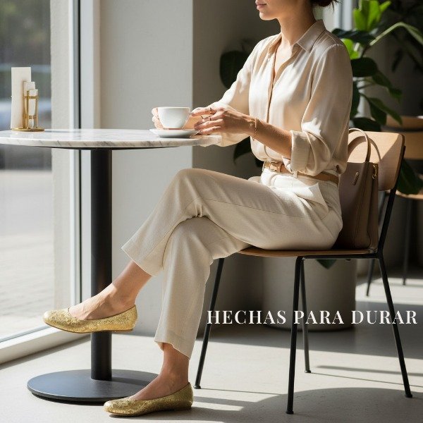 Hay zapatos que te visten, y hay zapatos que te iluminan. Nuestras balerinas doradas son una pieza de arte pensada para acompañarte con elegancia y un confort excepcional. El delicado transfer dorado sobre el cuero genuino las convierte en el toque de luz perfecto para elevar cualquier outfit, desde un look de oficina hasta tus jeans preferidos.