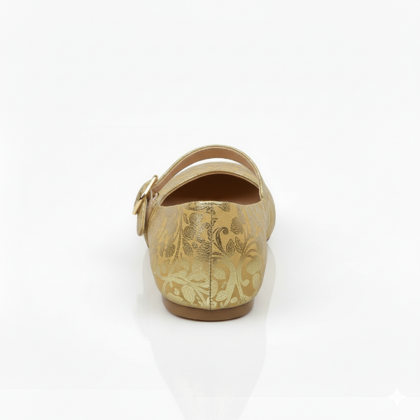 Descubra la elegancia atemporal y el confort excepcional de nuestras balerinas Aurea. Este refinado diseño se distingue por su capellada confeccionada en cuero con un exclusivo transfer dorado, que le otorga una luminosidad y una textura únicas.
