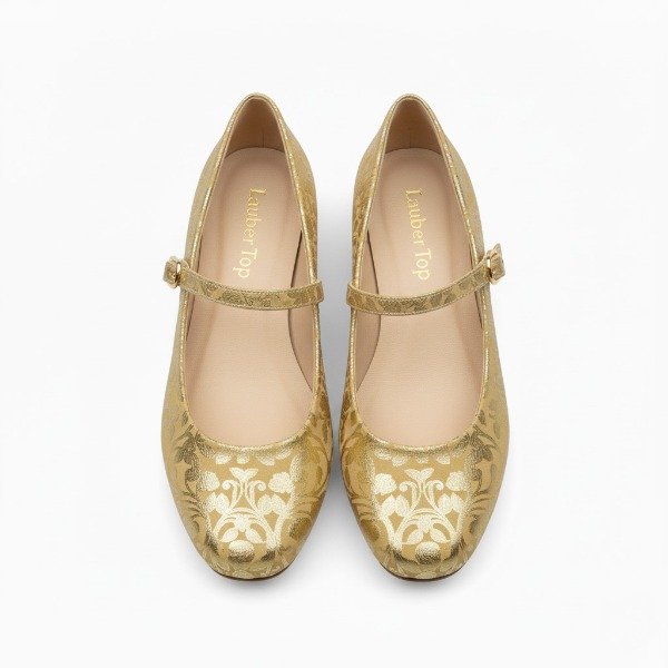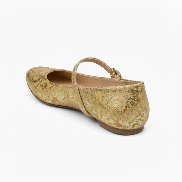 La Balerina Aurea es la fusión perfecta entre diseño y artesanía de autor. Pensada para una mujer que valora el lujo en cada paso, este modelo se destaca por su capellada en cuero genuino, realzada con un exquisito transfer de brocado dorado que le da un brillo único y sofisticado.